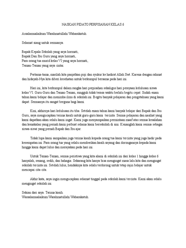 Pidato Perpisahan Kelas 6. Yang saya hormati Bapak Kepala Sekolah SD. Karena apabila anda menulis Naskah pidato tentunya harus tahu bagaimana yang baik dan benar.